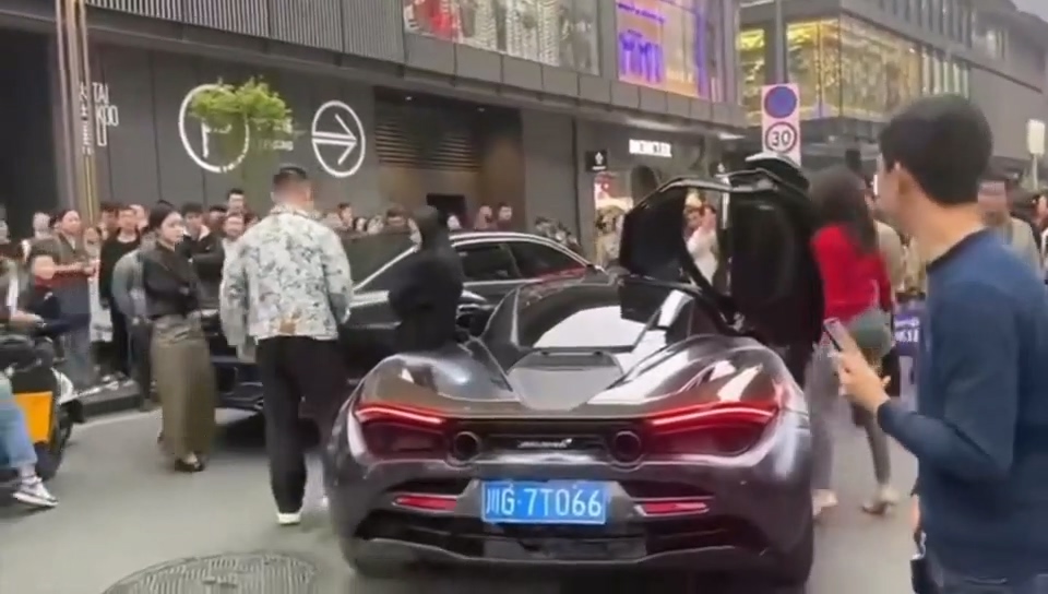 成都太古里上演名场面,开着迈凯伦的富二代当众翻车,三位名媛女友竟然在同一个地方全都出现,但富哥车里还坐着一位小六,四女一男上演路边开撕大戏。